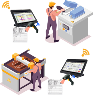 - 各工程ではバーコードにて進捗を入力するだけなので、作業日報の作成やシステムへの入力が不要になり作業効率が向上します。