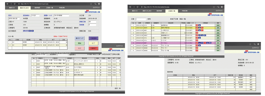 ・工数の訂正入力進捗確認 ・バーコード入力で該当品の工程進捗の表示